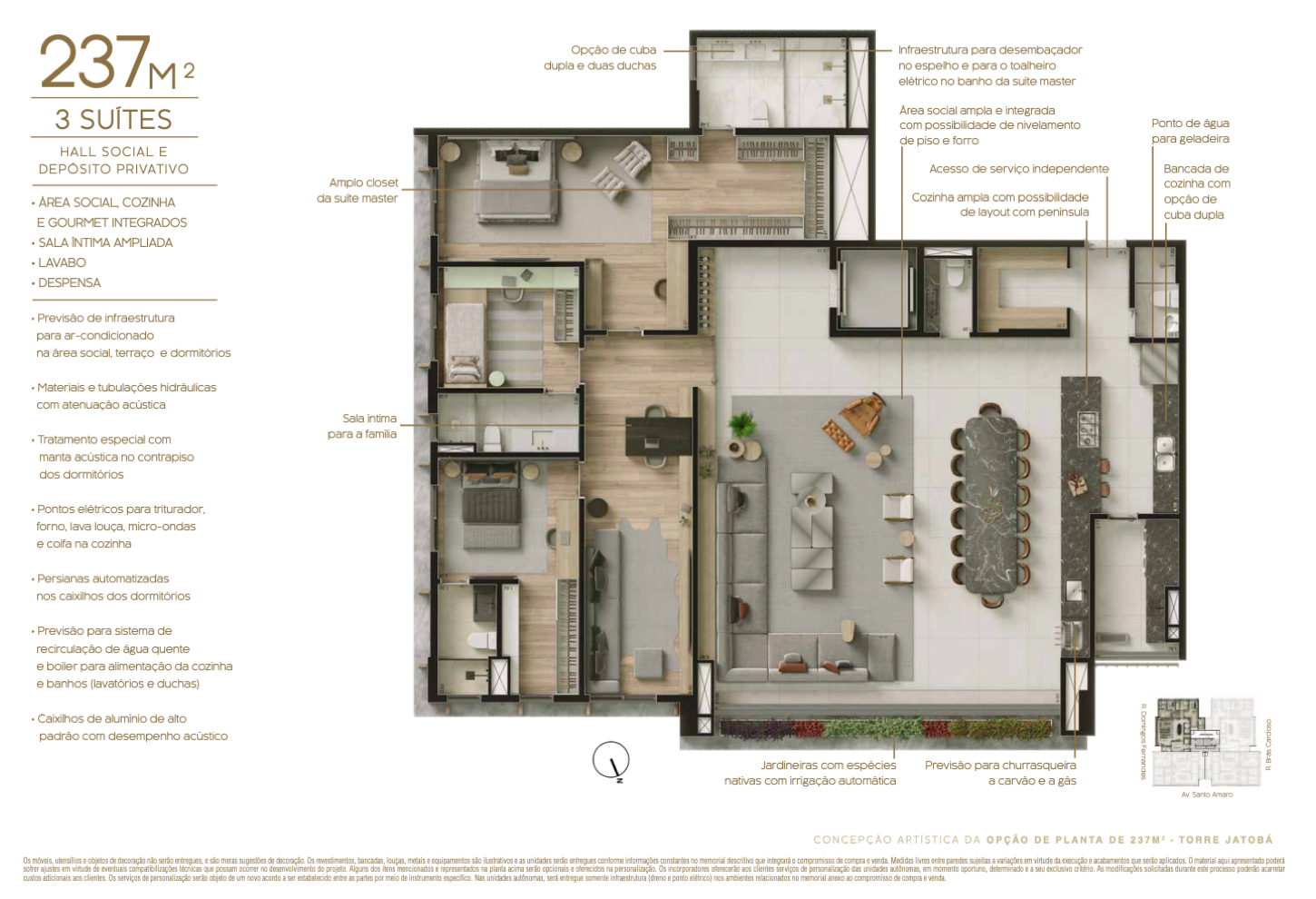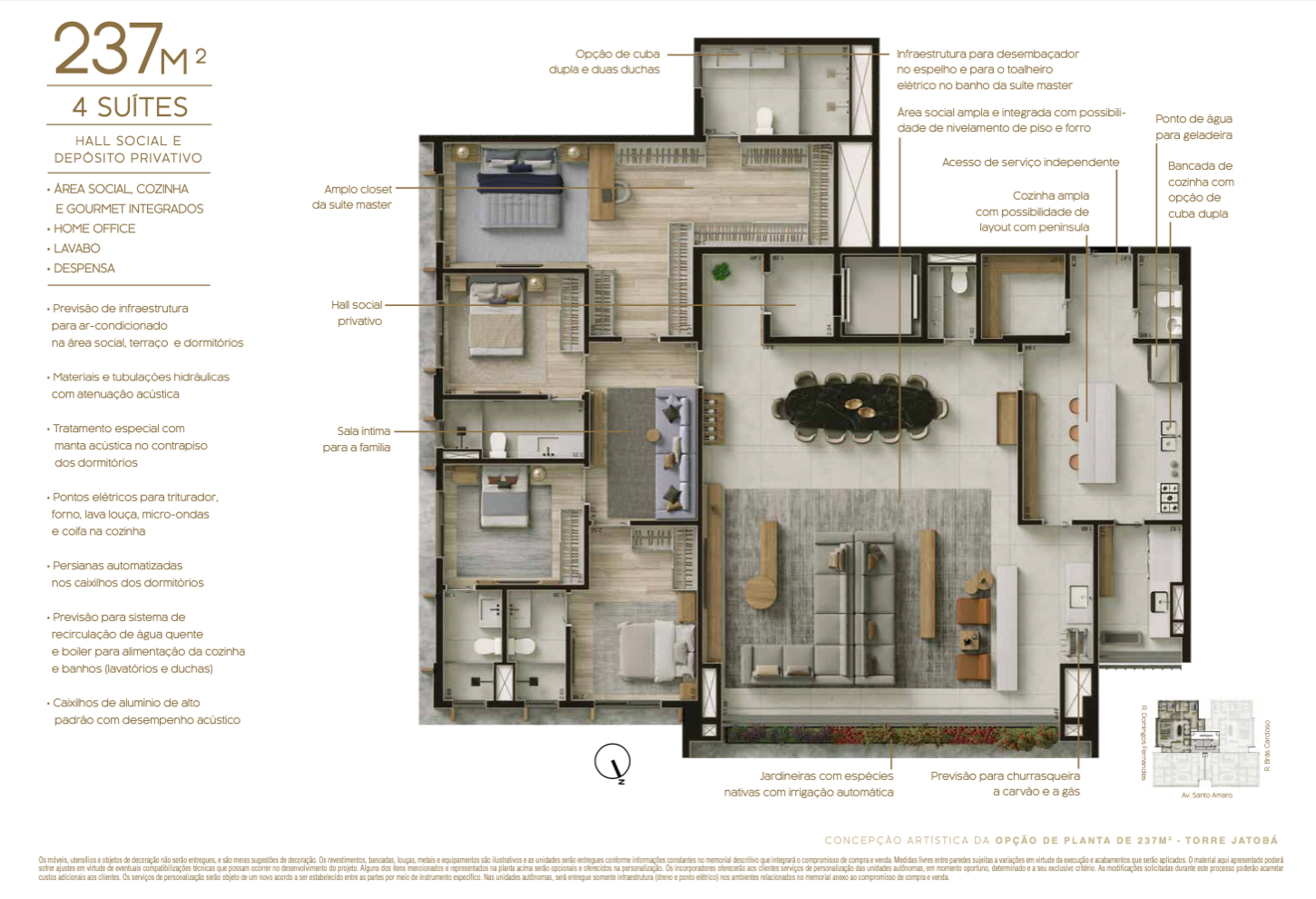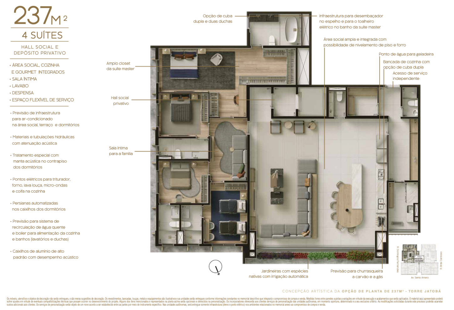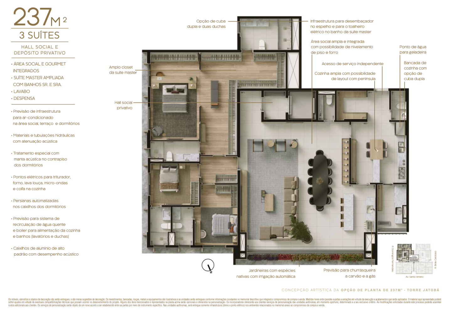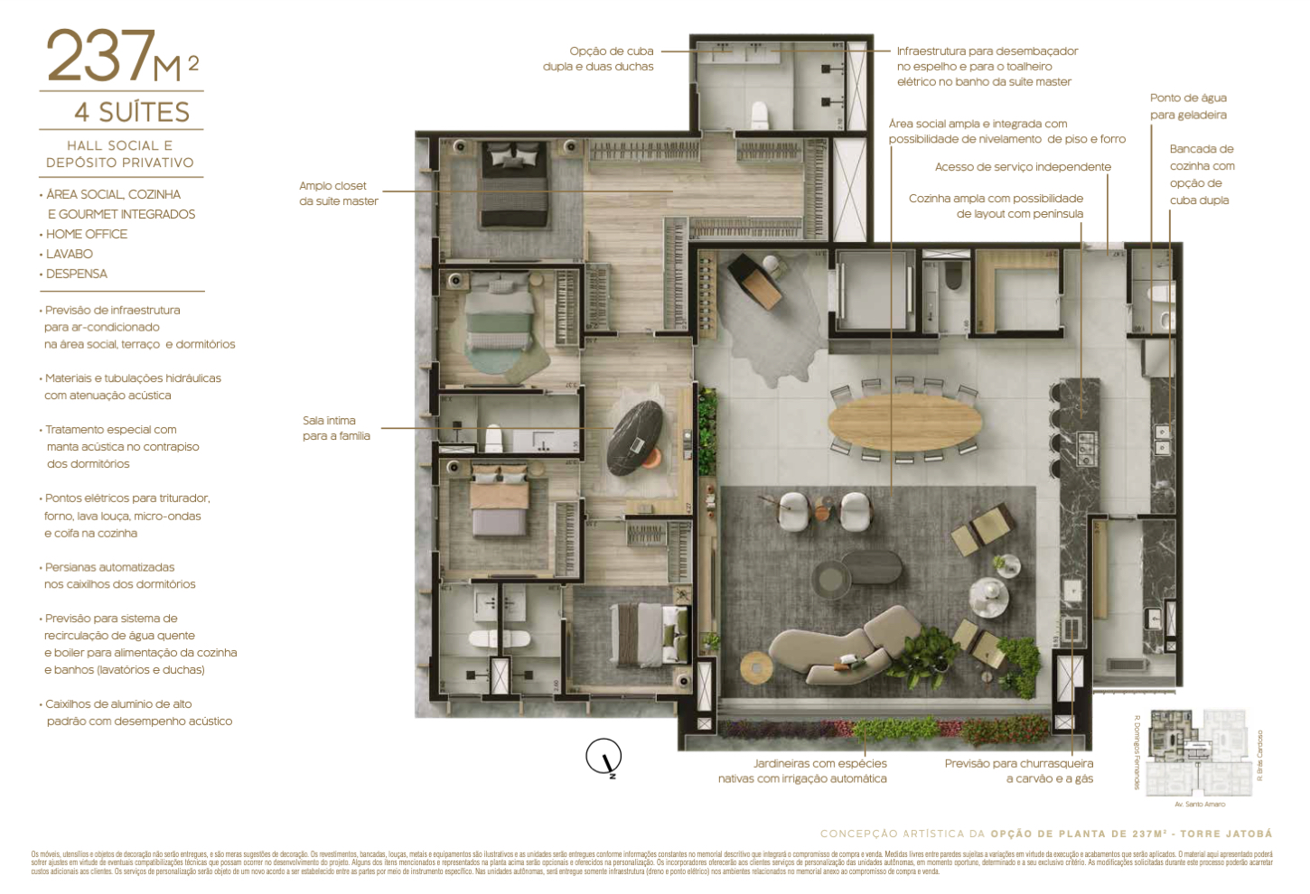 Concepção artística da opção de planta de 237 m² - Torre Jatobá