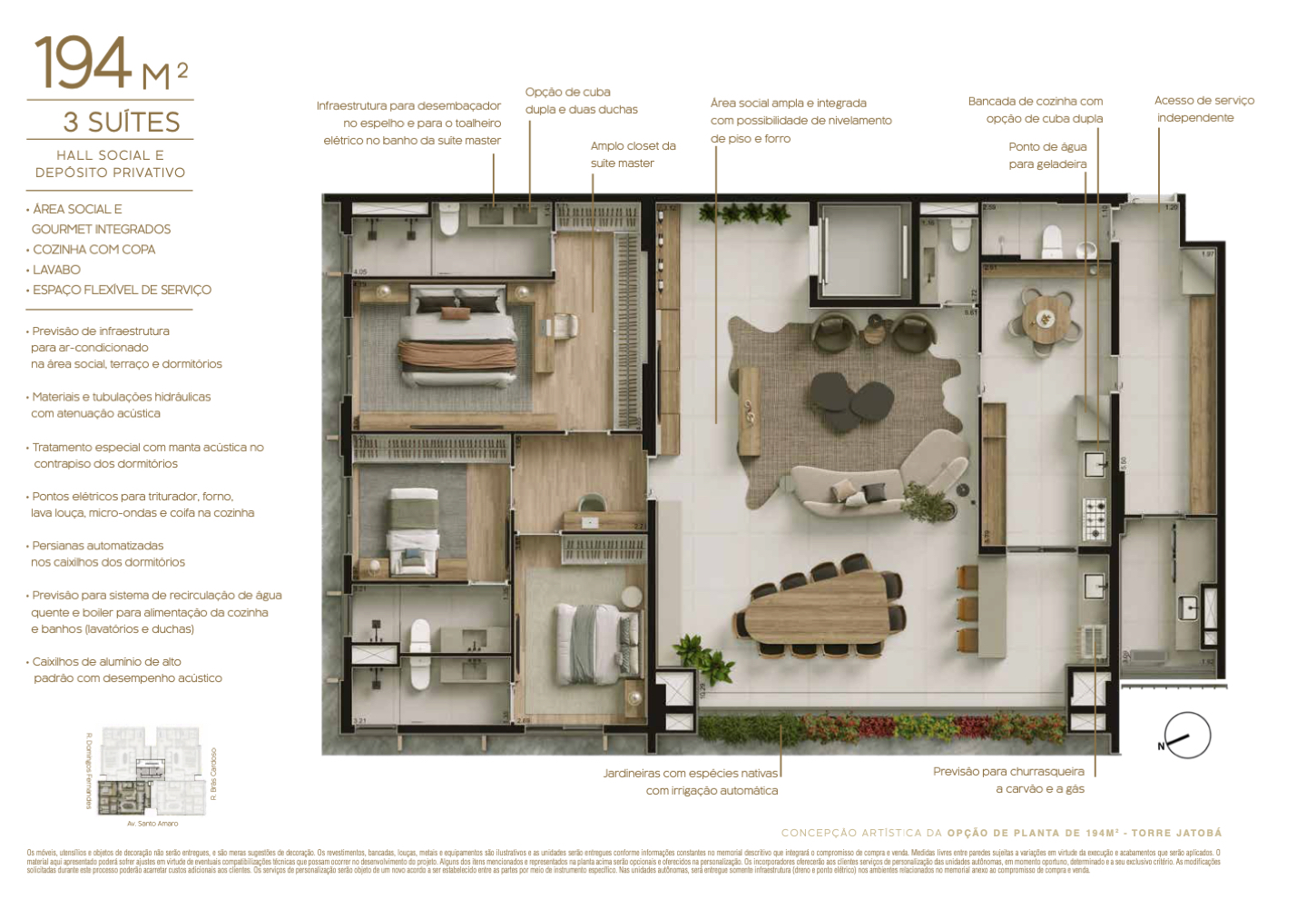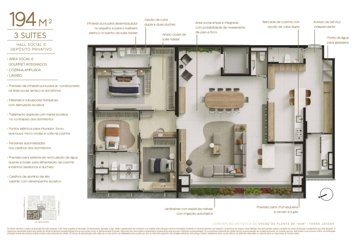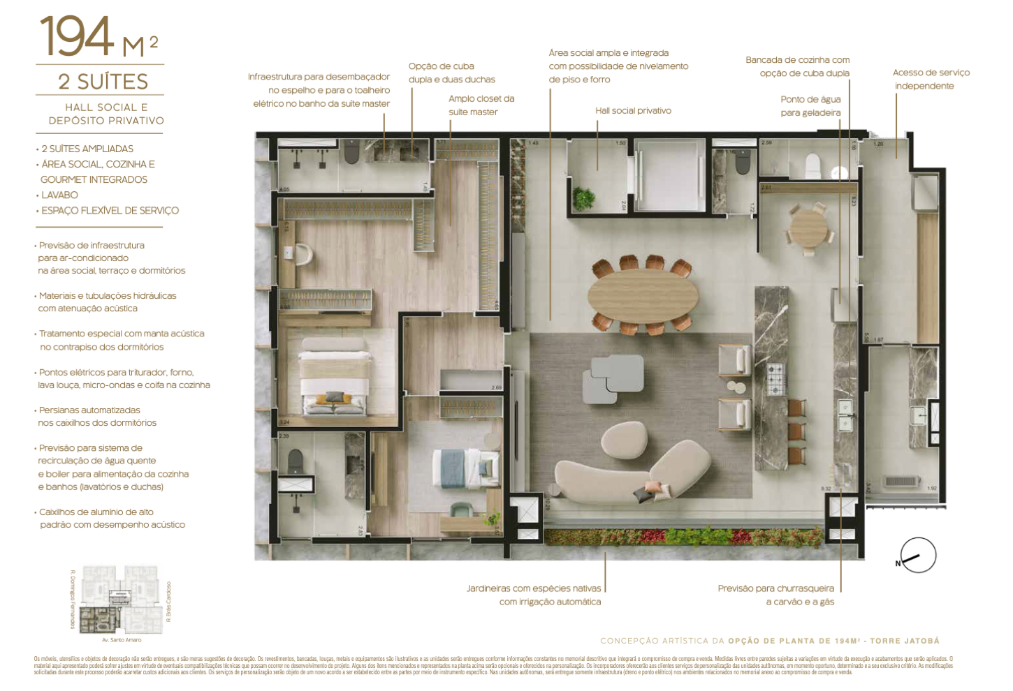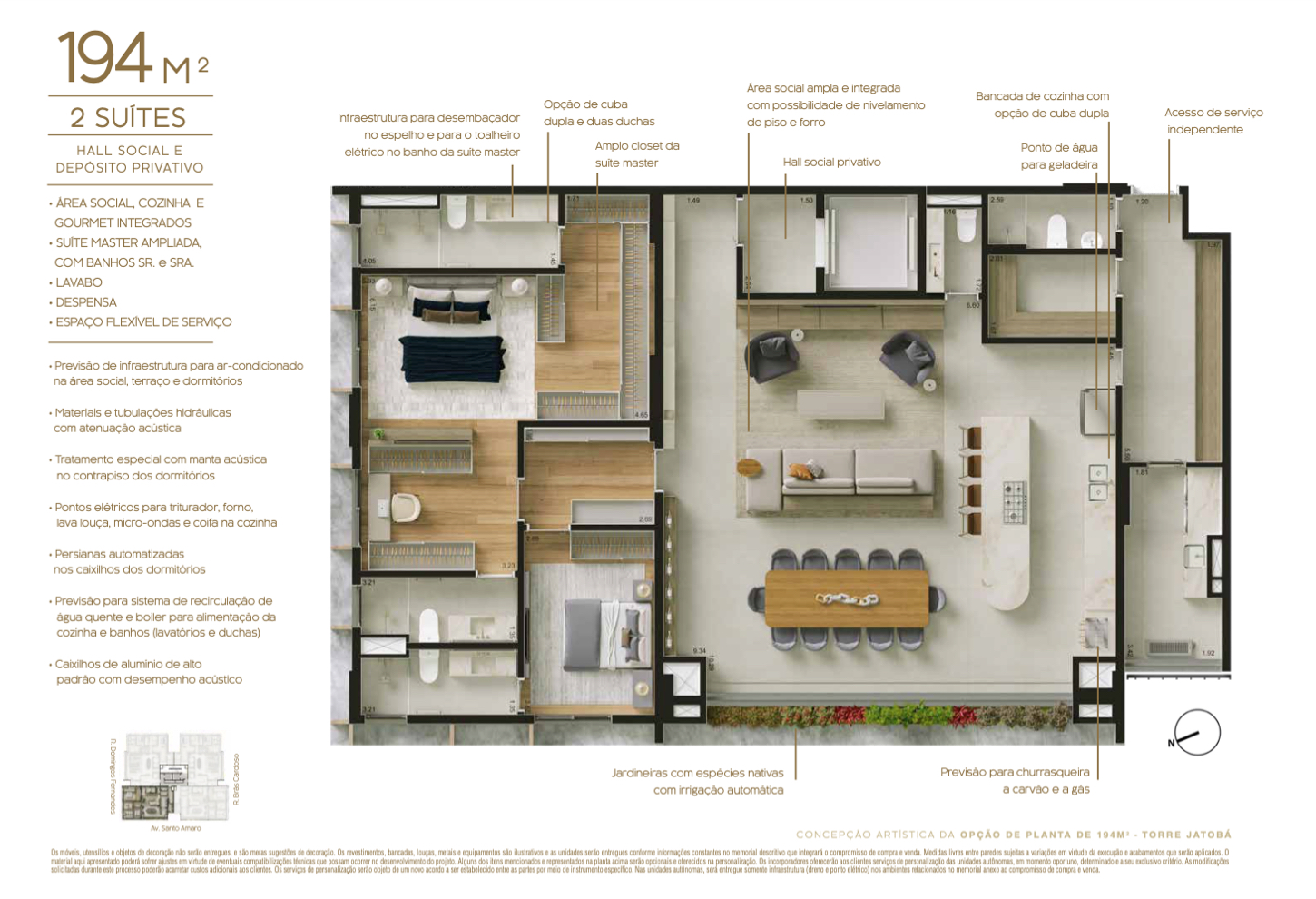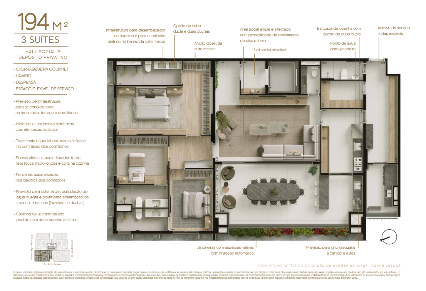 Concepção artística da opção de planta de 194 m² - Torre Jatobá