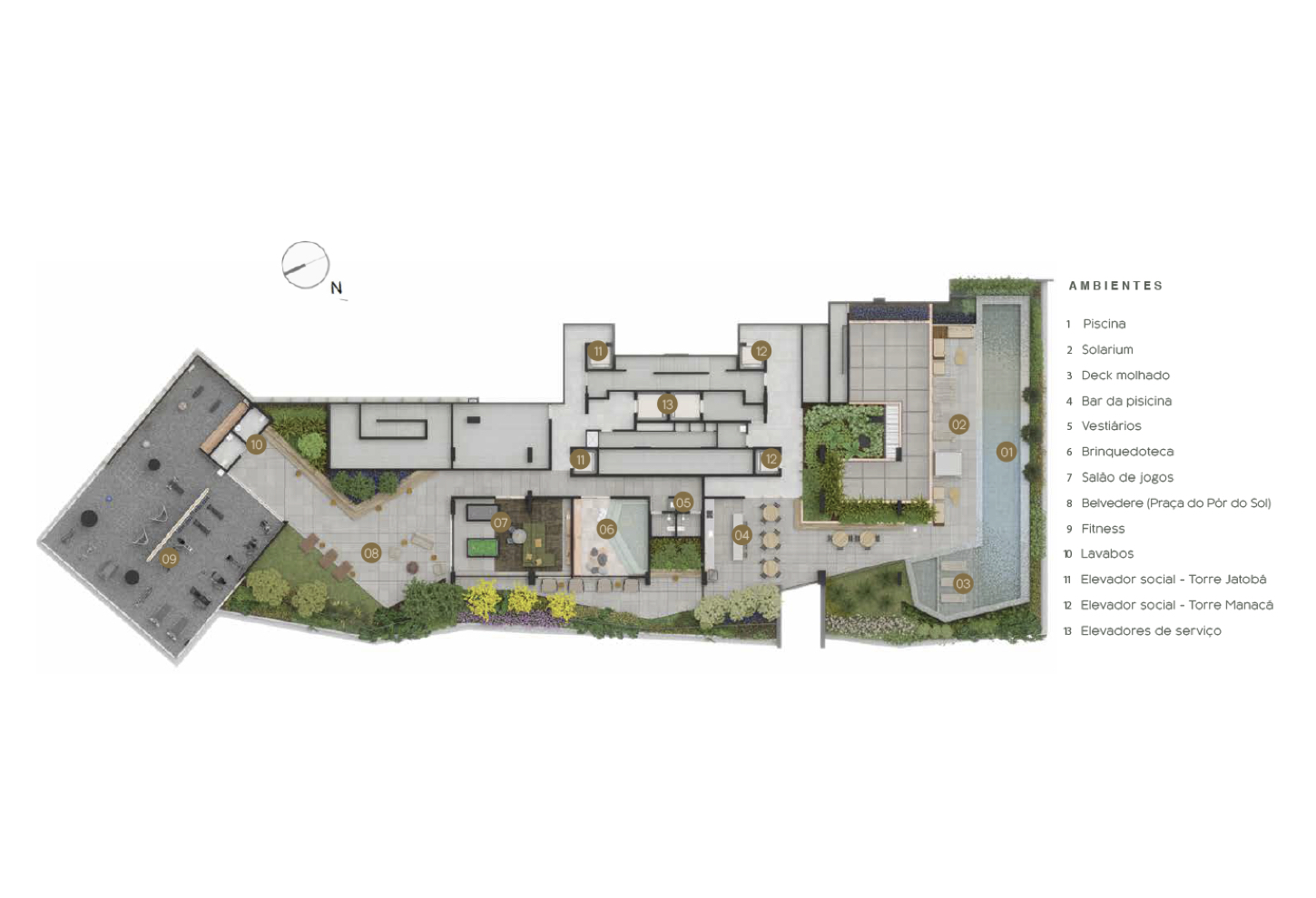 Salão de festas, academia e piscina exclusivas para cada torre, com portarias independentes.