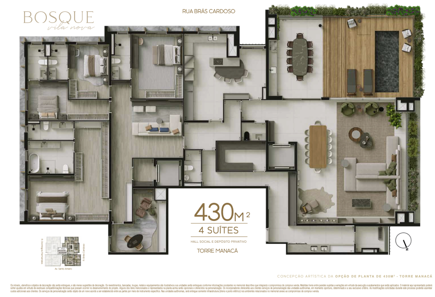 Concepção artística da opção de planta de 430 m² - Torre Manacá