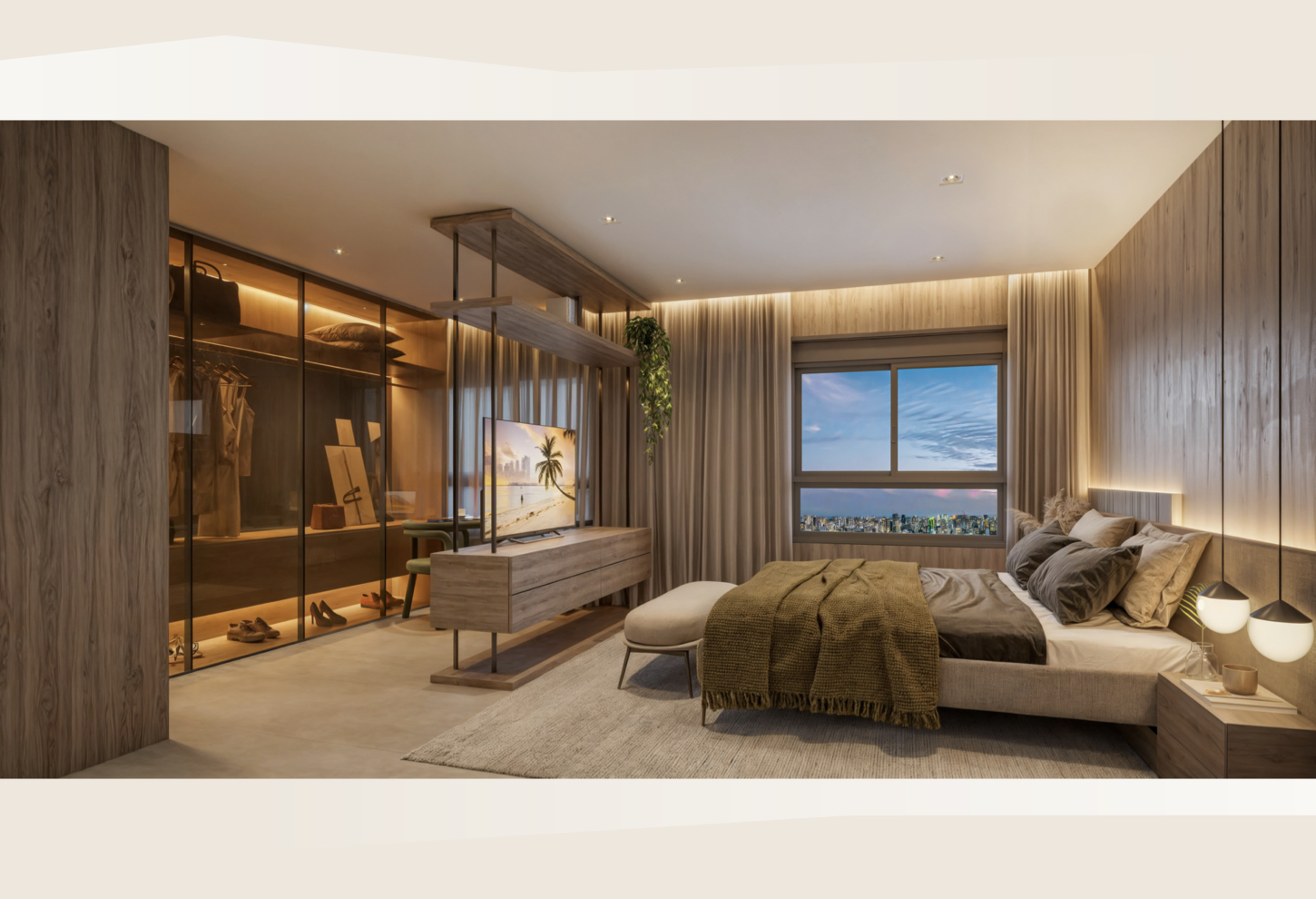 Concepção artística da opção de suíte master ampliada do apto. 194 m²